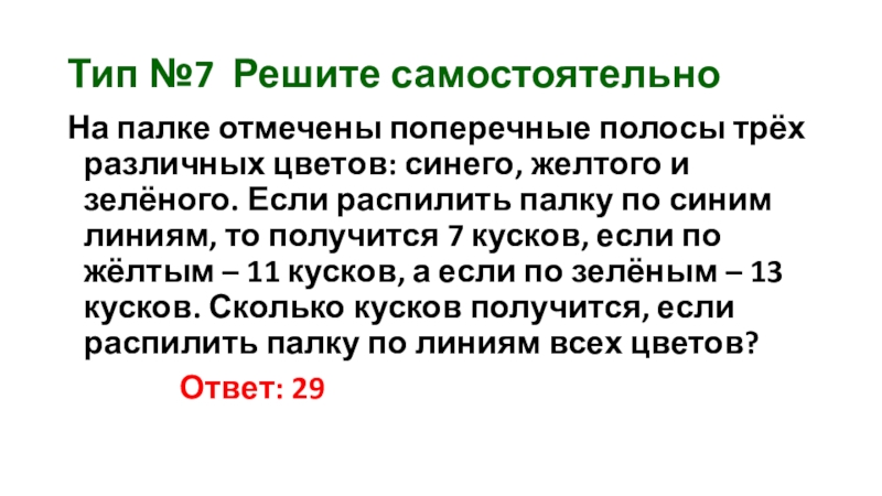 складе в один ряд длиной 43м, приставляя друг к другу по ширине. Ящики одного вида имеют длину 2м, а другого-5м. Какое наибольшее число ящиков потребуется для заполнения всего ряда без образования пустых мест?