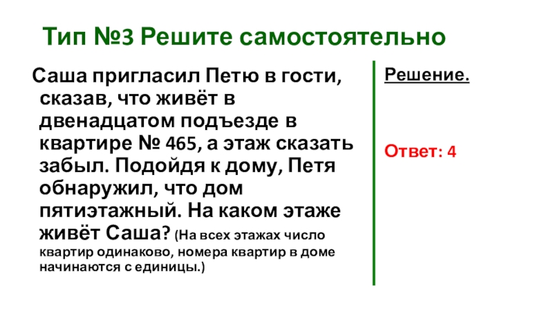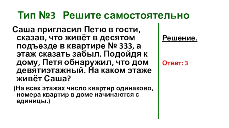 Саша пригласил Петю в гости, сказав, что живёт в седьмом