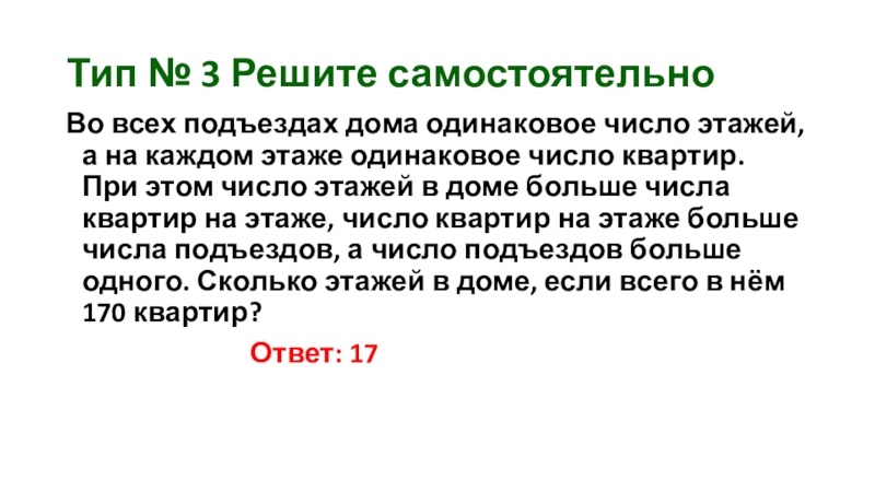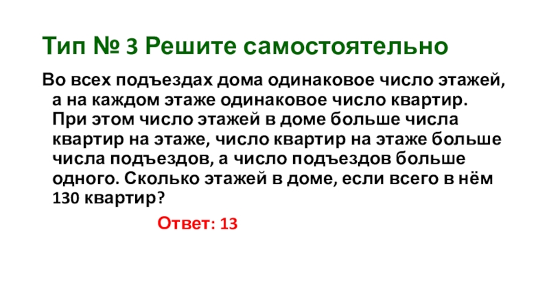 Во всех подъездах дома одинаковое число этажей, а на каждом