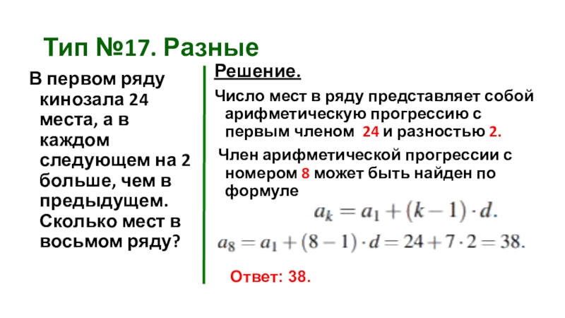 Число мест в ряду представляет собой арифметическую прогрессию с первым членом 24 и разностью 2.