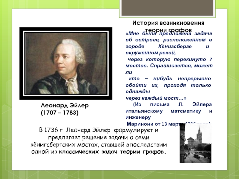«Мне была предложена задача об острове, расположенном в городе Кёнигсберге и окружённом рекой,