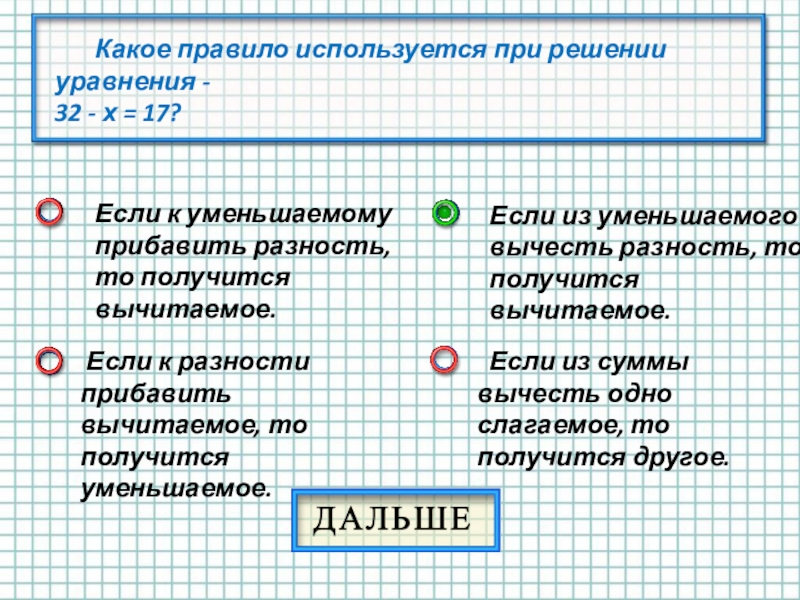 Если к уменьшаемому прибавить разность, то получится вычитаемое.