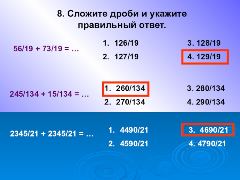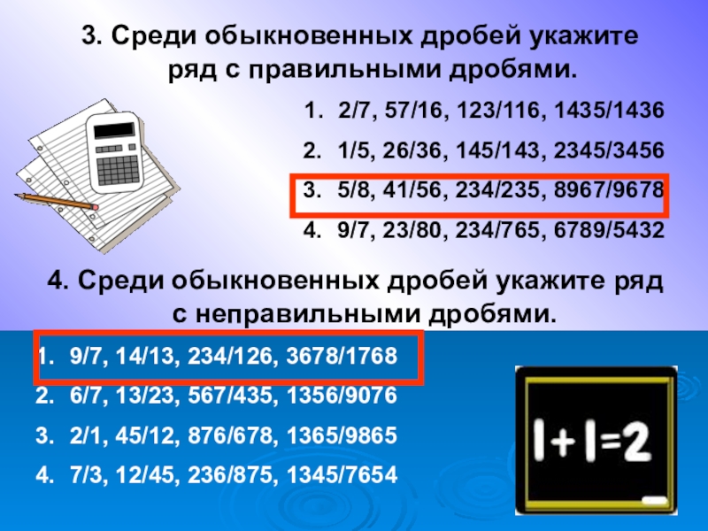 4. Среди обыкновенных дробей укажите ряд с неправильными дробями.