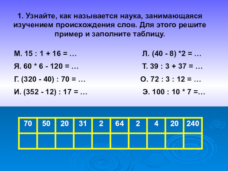 И. (352 - 12) : 17 = … Э. 100 : 10 * 7 =…