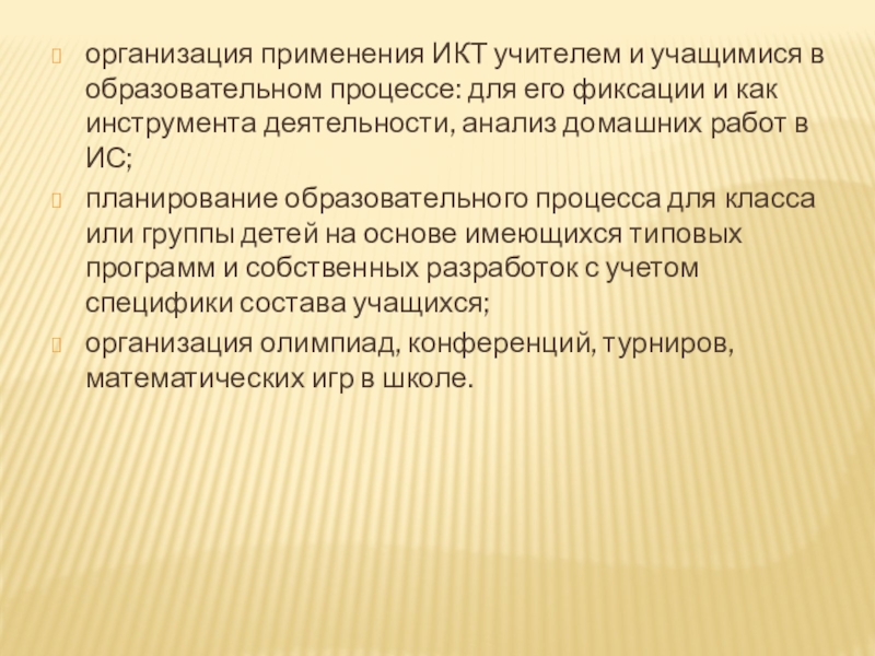 Слайд 10организация применения ИКТ учителем и учащимися в образовательном процессе: для его