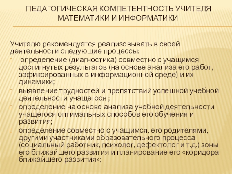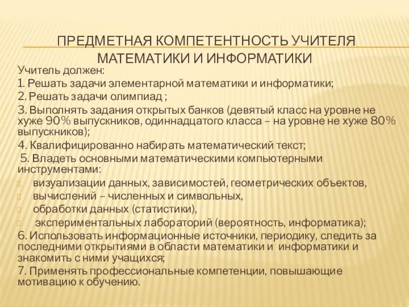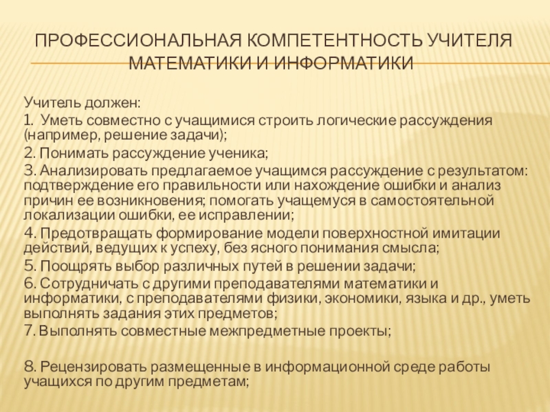 Слайд 9 педагогическая компетентность учителя математики и информатики
