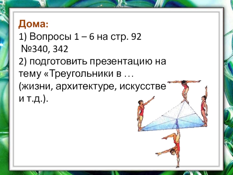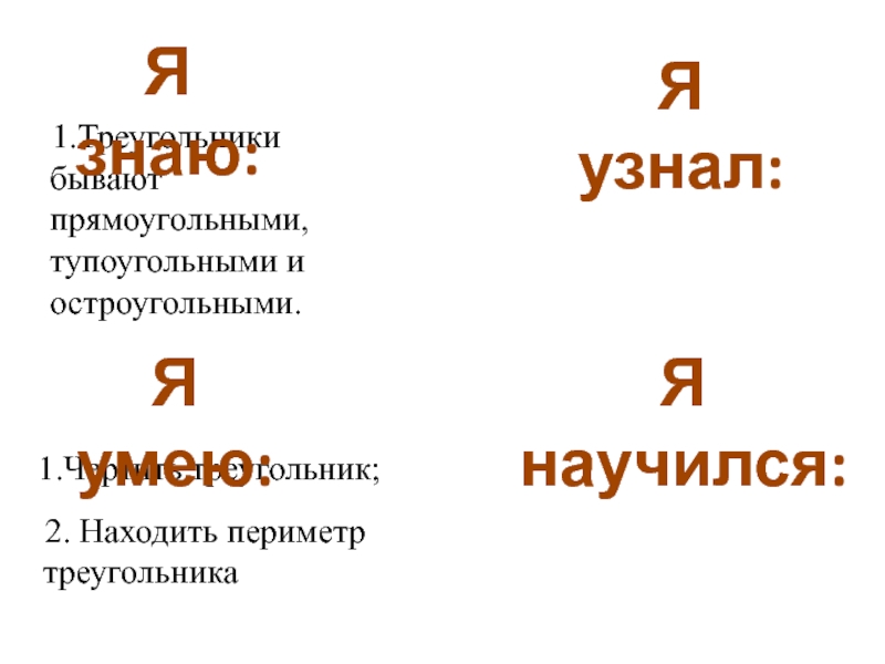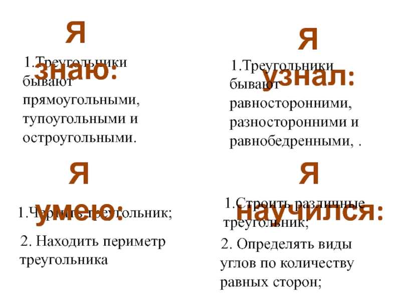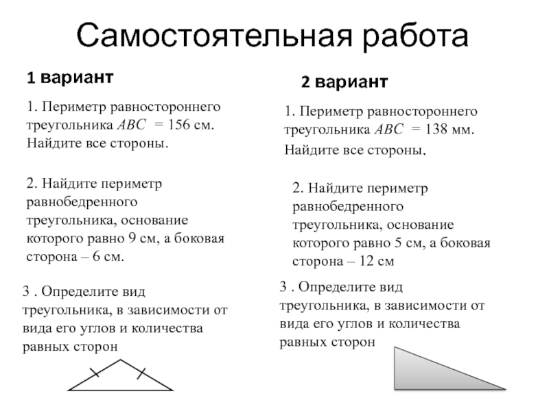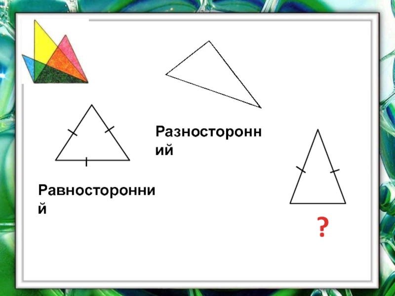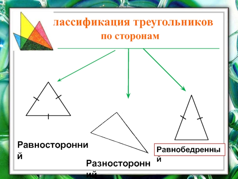 1.Треугольники бывают равносторонними, разносторонними и равнобедренными, .