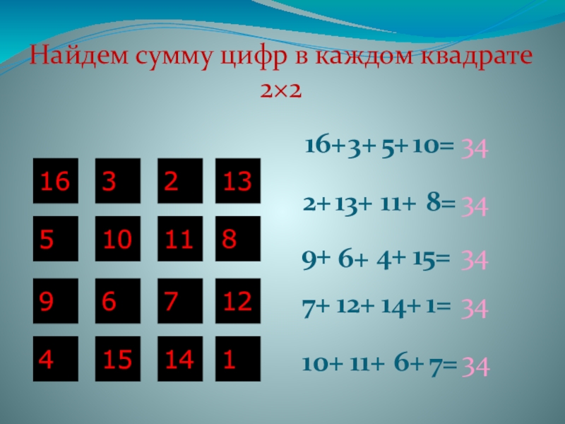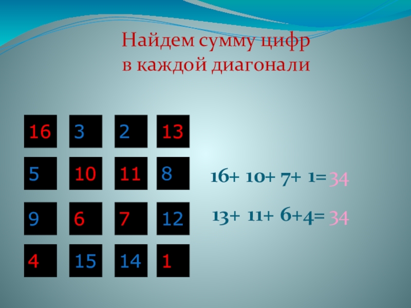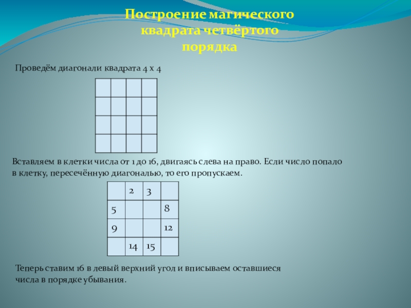Теперь ставим 16 в левый верхний угол и вписываем оставшиеся числа в порядке убывания.