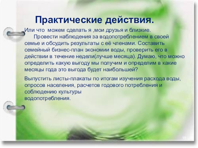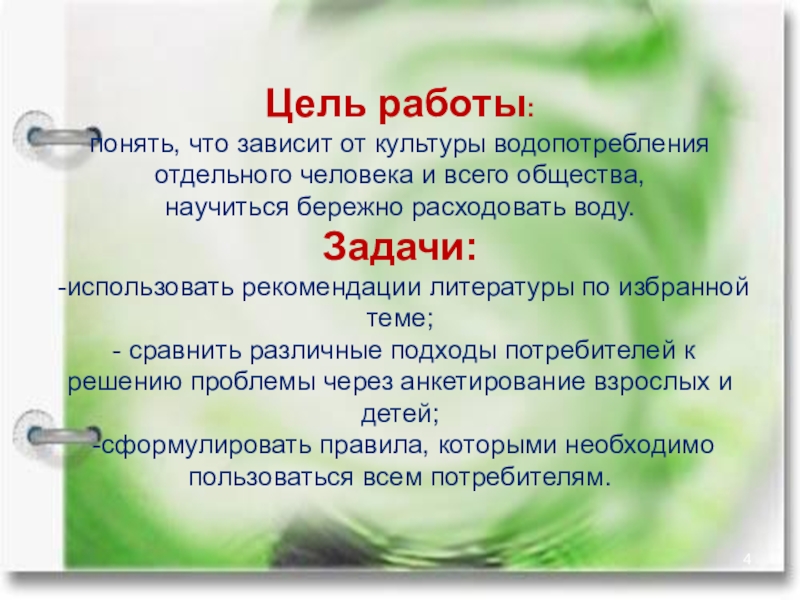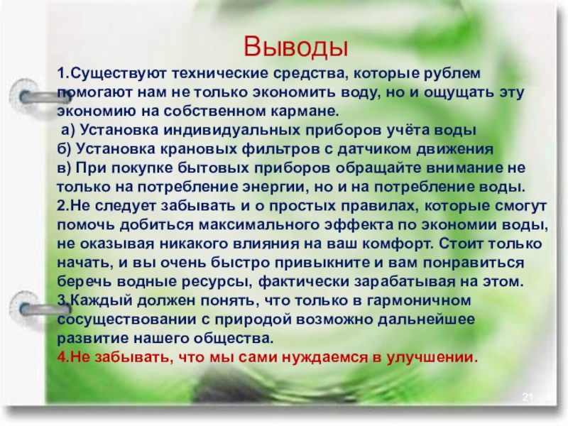 Выпустить листы-плакаты по итогам изучения расхода воды, опросов населения, расчетов годового потребления и соблюдению культуры