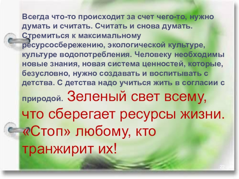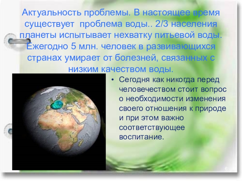 Сегодня как никогда перед человечеством стоит вопрос о необходимости изменения своего отношения к природе и при этом важно соответствующее воспитание.