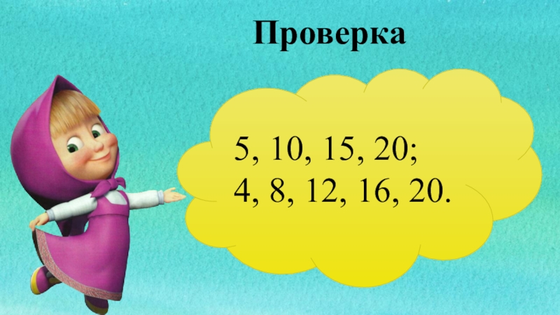 Проверка5, 10, 15, 20;4, 8, 12, 16, 20.