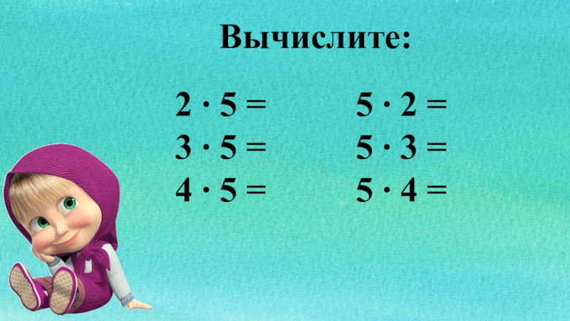 Вычислите:2 ∙ 5 =     5 ∙ 2 =