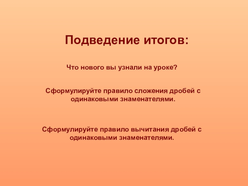 Сформулируйте правило вычитания дробей с одинаковыми знаменателями.