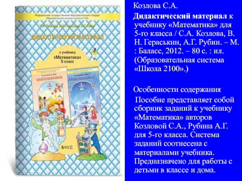 учебнику «Математика», 5 класс. – М. : Баласс, 2011. – 48 с. (Образовательная система «Школа 2100»).