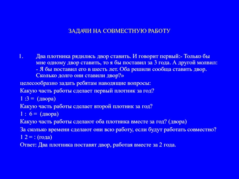 Слайд 19ЗАДАЧИ НА СОВМЕСТНУЮ РАБОТУ