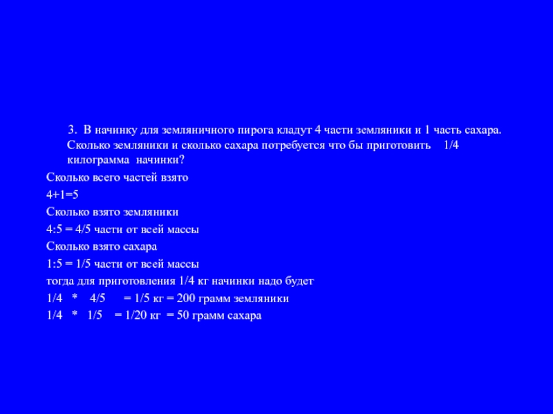 1/4 * 4/5 = 1/5 кг = 200 грамм земляники