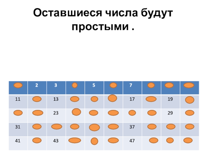 Слайд 4Оставшиеся числа будут простыми .