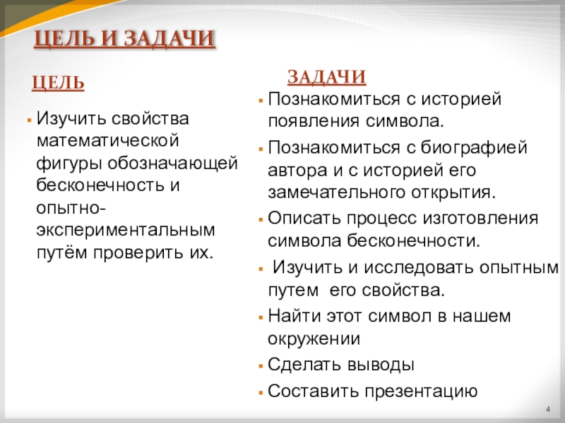 Слайд 4ЦЕЛЬ И ЗАДАЧИ