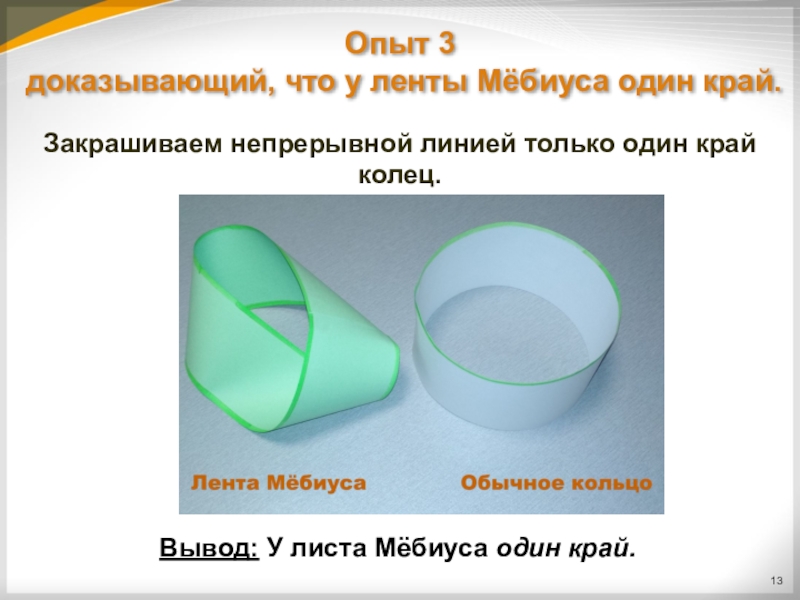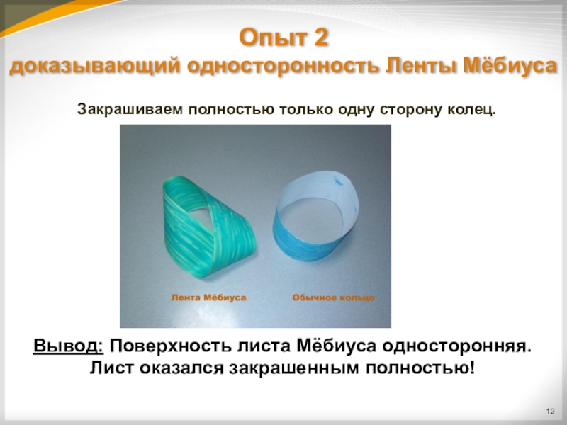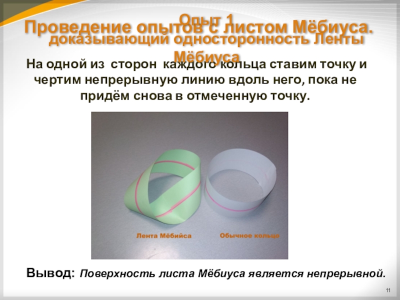 Слайд 11Проведение опытов с листом Мёбиуса.