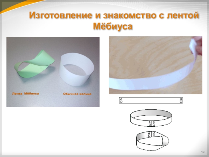Слайд 10 Изготовление и знакомство с лентой Мёбиуса