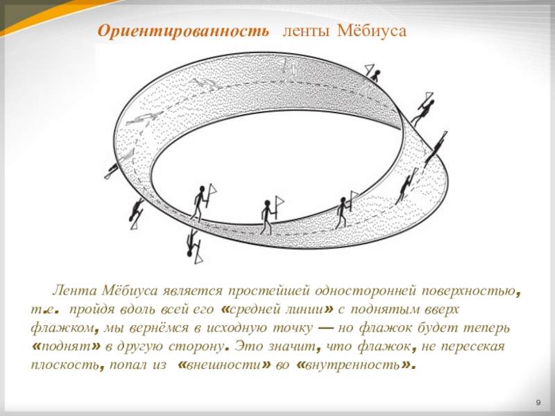 его «средней линии» с поднятым вверх флажком, мы вернёмся в исходную точку — но флажок будет теперь «поднят» в другую сторону. Это значит, что флажок, не пересекая плоскость, попал из «внешности» во «внутренность».