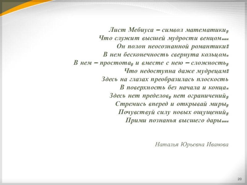 Математики сравнивают знак бесконечности с лентой Мебиуса.