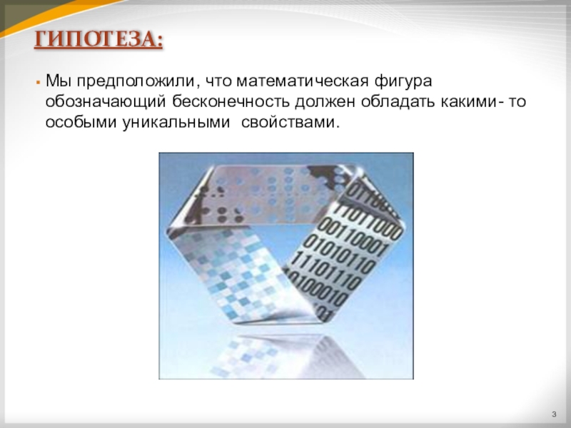 Изучить свойства математической фигуры обозначающей бесконечность и опытно-экспериментальным путём