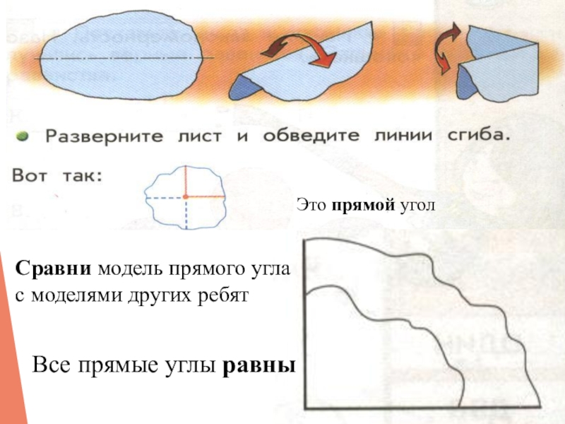 Сравни модель прямого угла с моделями других ребятВсе прямые углы равныЭто прямой угол