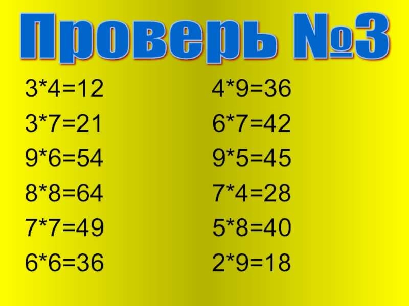 Проверь №33*4=123*7=219*6=548*8=647*7=496*6=364*9=366*7=429*5=457*4=285*8=402*9=18