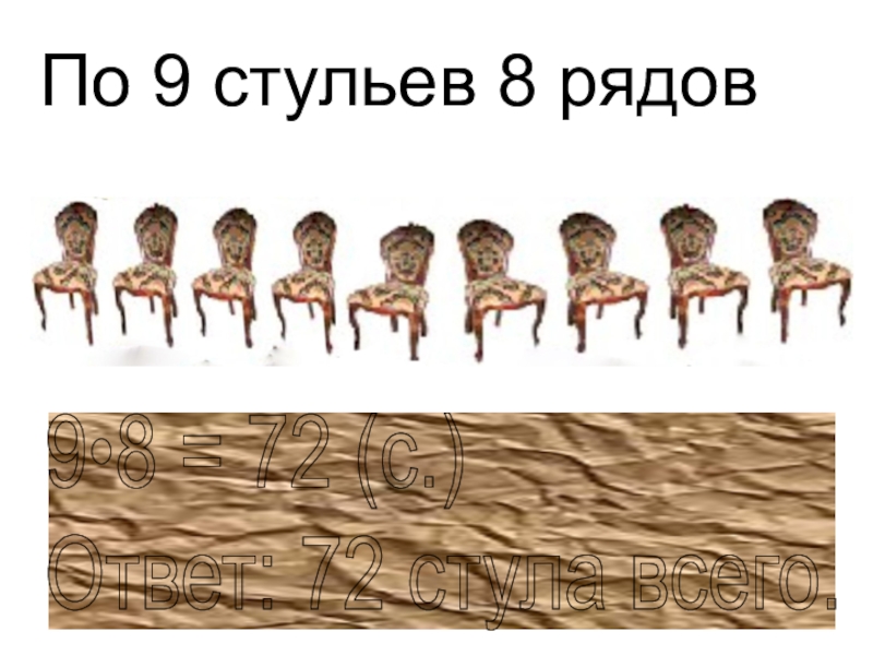 Слайд 69•8 = 72 (c.) Ответ: 72 стула всего.