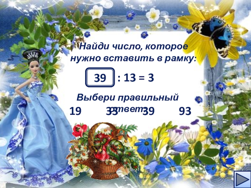 Найди число, которое нужно вставить в рамку:     : 13 = 339Выбери правильный ответ:19393393
