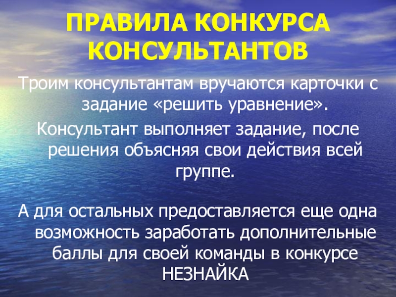 Слайд 29ПРАВИЛА КОНКУРСА КОНСУЛЬТАНТОВ