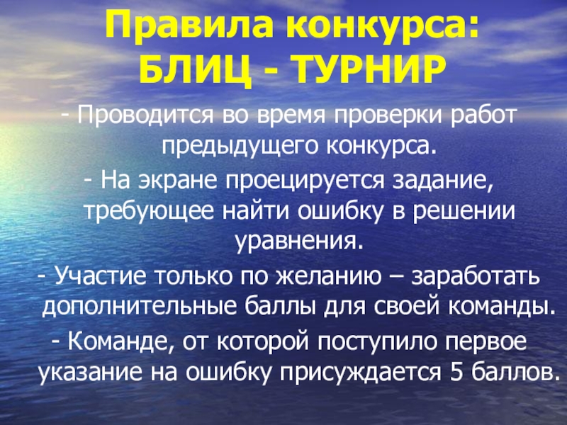 - Команде, от которой поступило первое указание на ошибку присуждается 5 баллов.