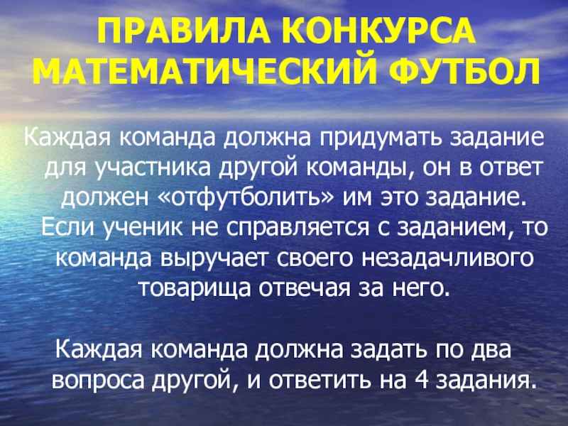 он в ответ должен «отфутболить» им это задание. Если ученик не справляется с заданием, то команда выручает своего незадачливого товарища отвечая за него.