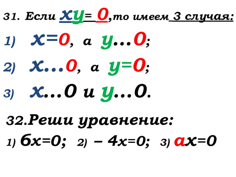 1) 6х=0; 2) – 4х=0; 3) ах=0