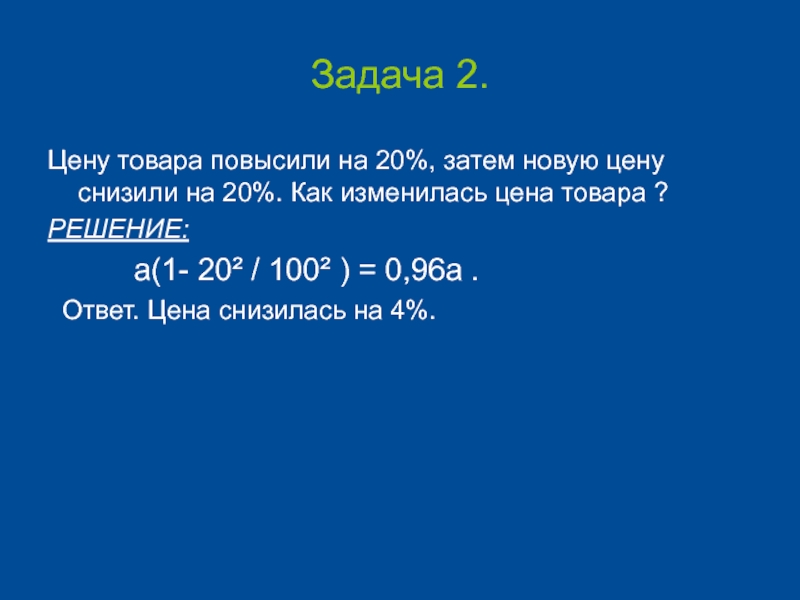 20%. Как изменилась цена товара ?