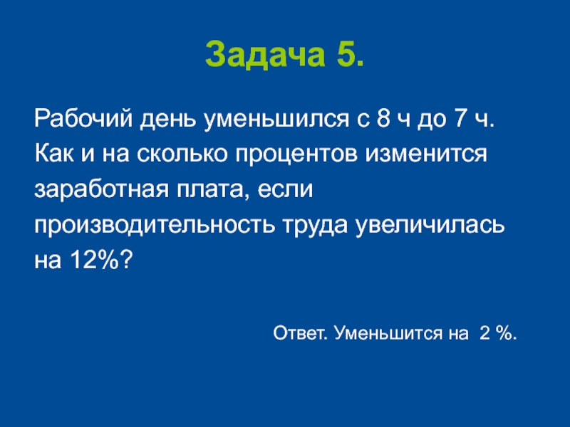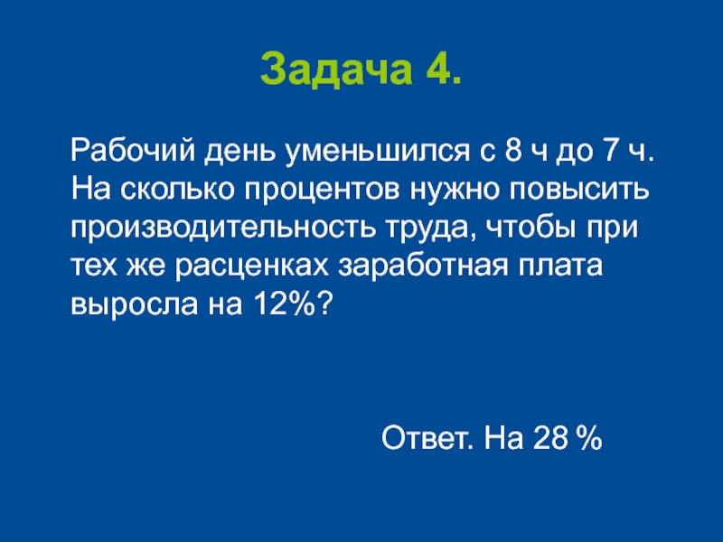 7 ч. На сколько процентов нужно повысить производительность труда, чтобы заработная плата осталась прежней?