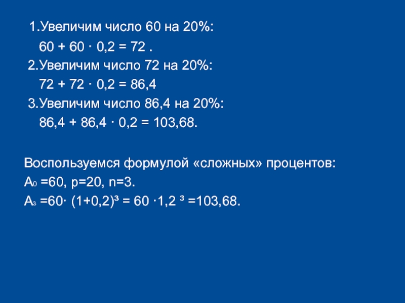 А3 =60· (1+0,2)³ = 60 ·1,2 ³ =103,68.