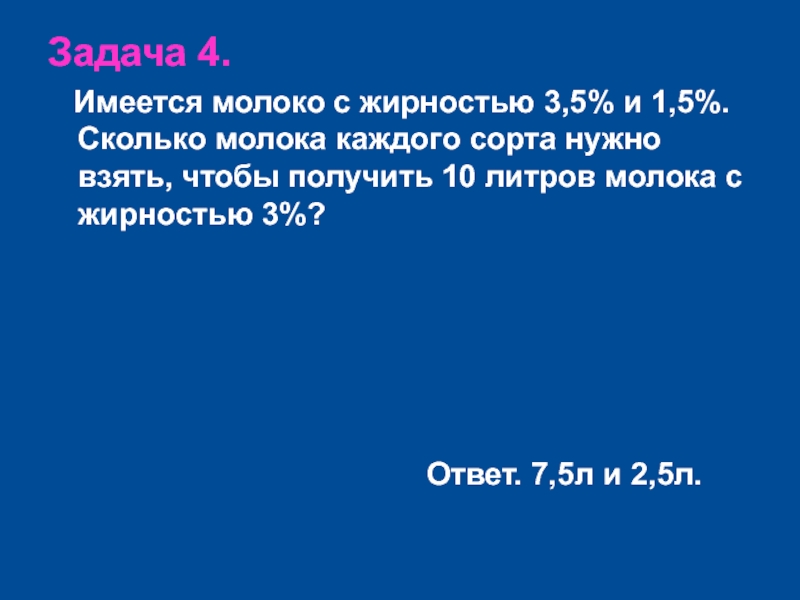 Сколько молока каждого сорта нужно взять, чтобы получить 10 литров молока с жирностью 3%?