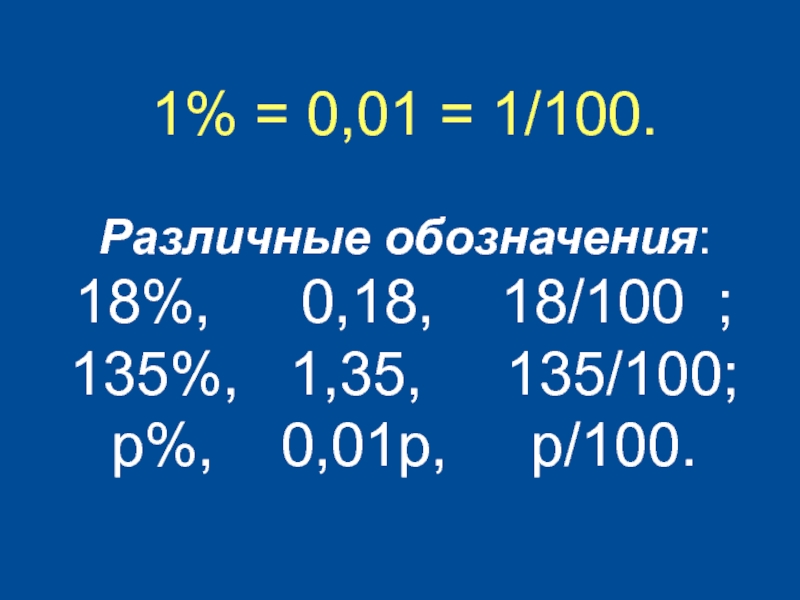 Слайд 21% = 0,01 = 1/100.