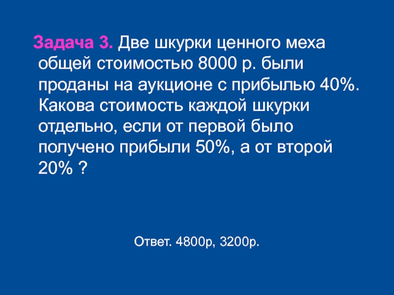 Задача 3. Две шкурки ценного меха общей стоимостью 8000 р.