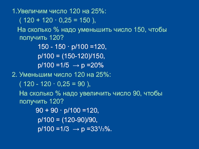 2. Уменьшим число 120 на 25%: