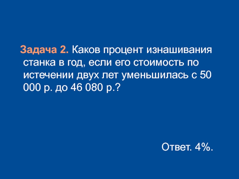 Задача 2. Каков процент изнашивания станка в год, если его