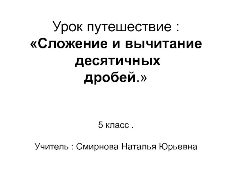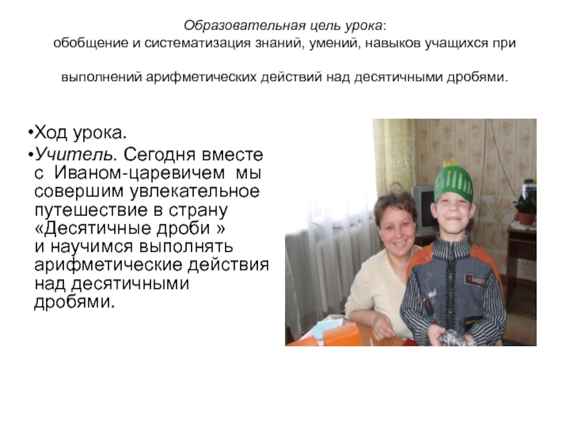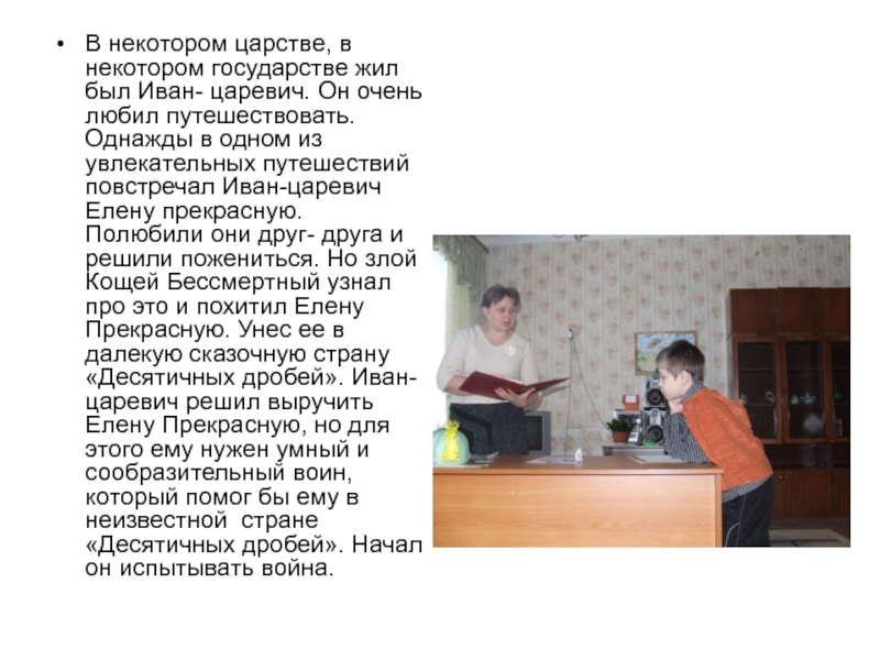 Учитель. Сегодня вместе с Иваном-царевичем мы совершим увлекательное путешествие в страну «Десятичные дроби » и научимся выполнять арифметические действия над десятичными дробями.