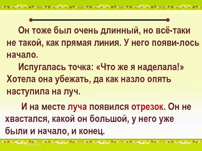 И на месте луча появился отрезок. Он не хвастался, какой он большой, у него уже были и начало, и конец.