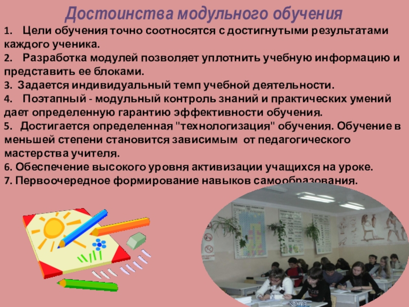 Учебный процесс сконцентрирован на ученике , а не на преподаватели.