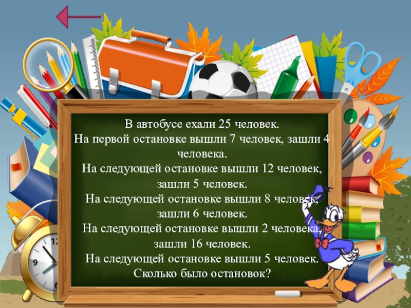 В автобусе ехали 25 человек. На первой остановке вышли 7 человек,