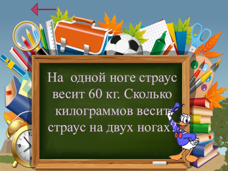 На одной ноге страус весит 60 кг. Сколько килограммов весит страус