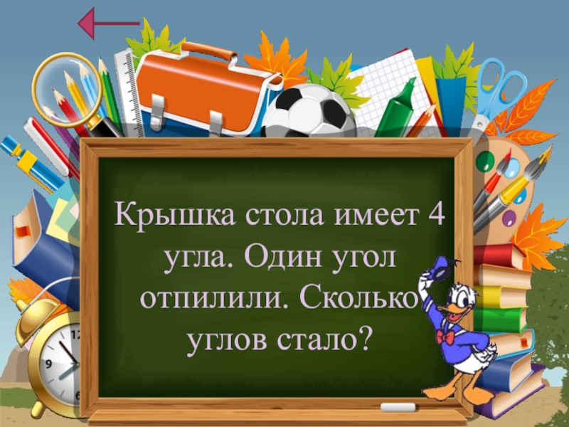 Крышка стола имеет 4 угла. Один угол отпилили. Сколько углов стало?