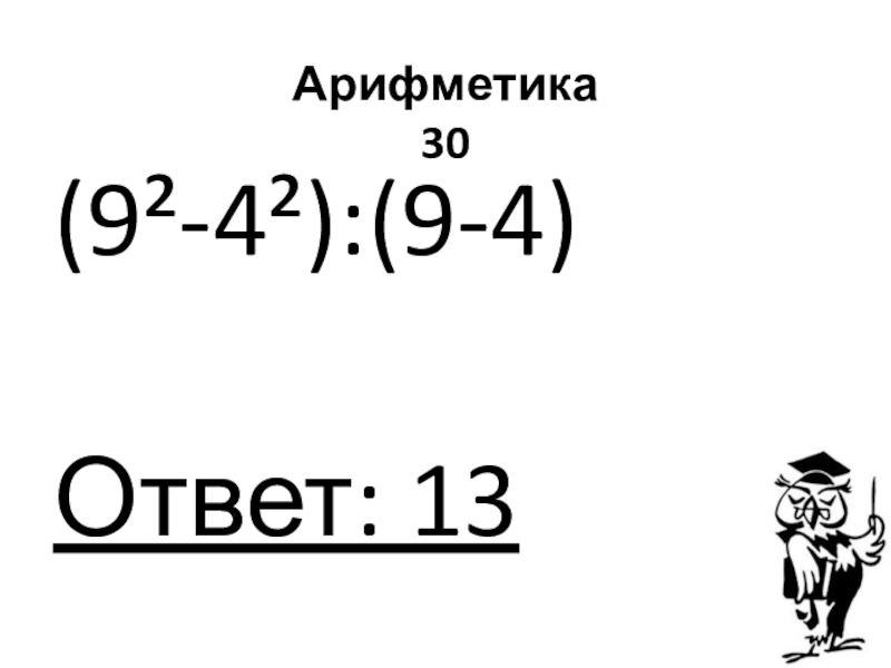 Арифметика 30(9²-4²):(9-4)Ответ: 13